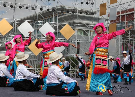 སྤྱི་ཟླ8པའི་ཚེས20ཉིན་གྱི་སྔ་དྲོར། མཚོ་ལྷོ་ཁུལ་གྱི་སྐབས་གཉིས་པའི་བོད་ཀྱི་རྒྱན་གོས་རིག་གནས་སྒྱུ་རྩལ་དུས་ཆེན་དུ་བྲག་དཀར་རྫོང་དང་མང་རྫོང་གི་འཁྲབ་སྟོན་རུ་ཁག་གིས་རྒྱན་གོས་འཁྲབ་སྟོན་བྱས།